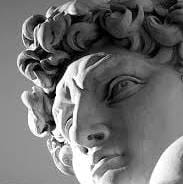 This marble sculpture of the biblical hero in a moment of contemplation before his battle with Goliath.
