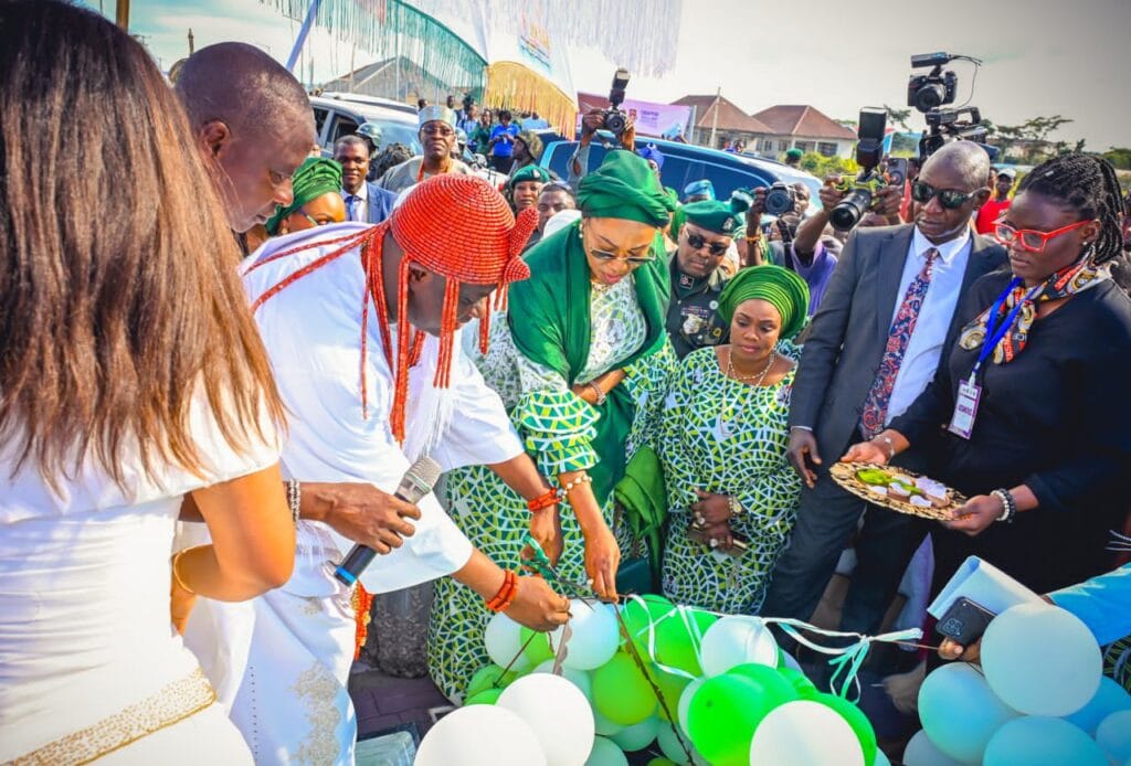 The First Lady inaugurated three key infrastructural projects, a 2.7 kilometer road named after her and Ojaja male and female students hostels and pavilion, all executed by the traditional ruler, Ooni of Ife Oba Enitan Ogunwusi in commemoration of his 50th birthday.