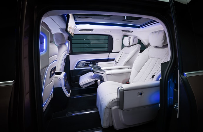 Additional features include a Burmester 3D surround sound system with Dolby Atmos, ambient lighting, fragrance diffusion, and hands-free access systems, all designed to elevate passenger comfort and convenience.