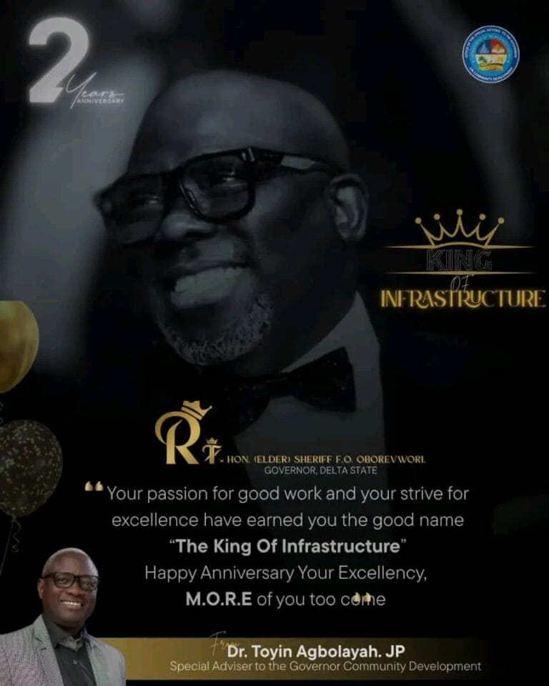 TWO YEARS ANNIVERSARY: Agbolayah congratulates Gov. Oborevwori, reaffirms commitment towards Advancing Delta Communities Agbolayah congratulates Gov. Oborevwori, reaffirms commitment towards…