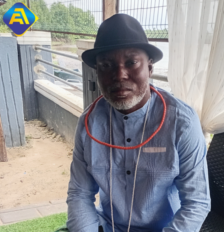 Omadino Community debunks Gbaramatu Voice report saying militants from Gbaramatu attacked Akpata Chief Priest Roland Oti Yomere, addressing newsmenOmadino Community…