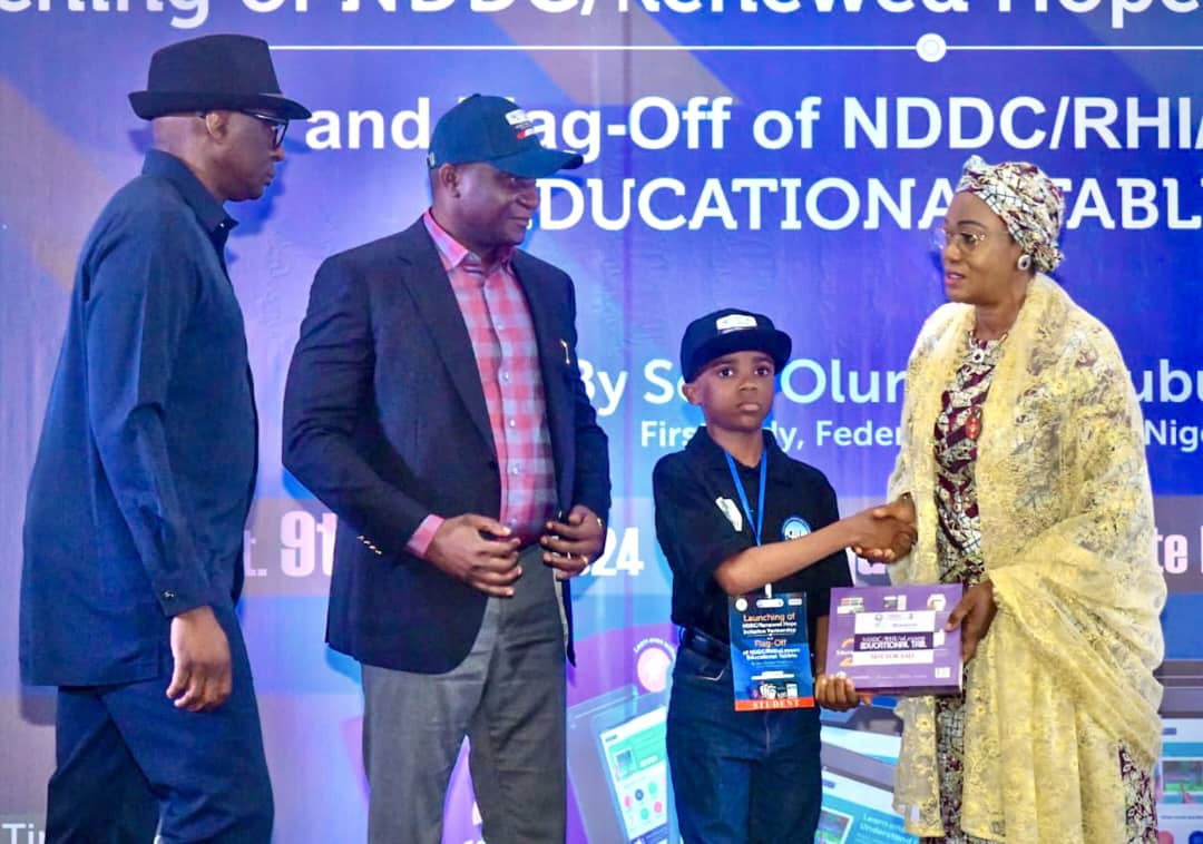 Nigeria’s First Lady, Senator Oluremi Tinubu, has launched the Niger Delta Development Commission, NDDC, and the Renewed Hope Initiative, RHI, partnership in the distribution of 45,000 U-Lesson Educational Tablets in primary and secondary schools across the Niger Delta region.