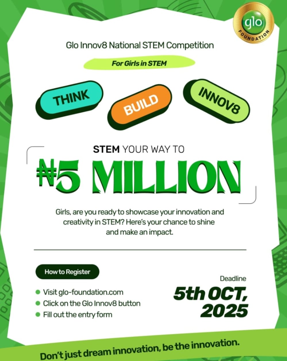 The registration for the Glo Foundation National Stem Competition tagged “Glo Innov8”, which kicked off on the Monday September 15th, will end on October 5, 2025.