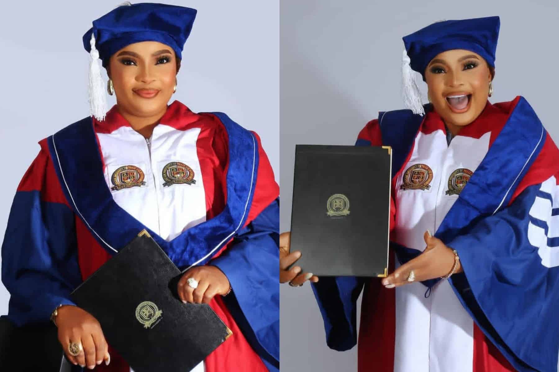 Nollywood actress Laide Bakare has officially joined the ranks of doctorate degree holders.