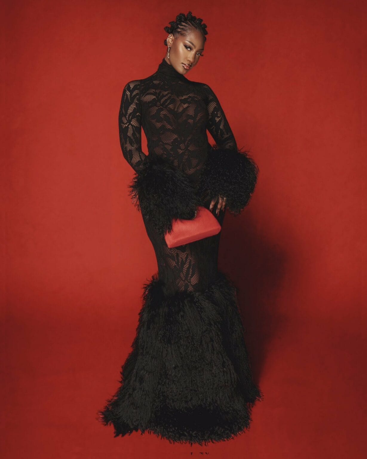 She wore a lace and feathered black Alaia gown and tied her hair into bantu knots. On the red carpet, Tems spoke about staying true to herself and not confining herself to a particular music genre. According to Tems, she just shows up as her authentic self.