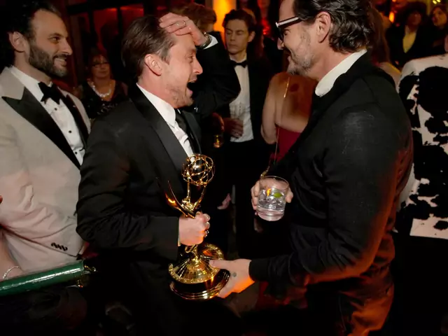 At the Golden Globes, Kieran Culkin started a playful “feud” with fellow outstanding actor in a drama series nominee Pedro Pascal after his win, telling Pascal to “suck it” onstage.Pascal paid back that jab in kind at the Emmys. While presenting the award for best supporting actor in a drama series, he explained that his arm was in a sling due to a shoulder injury.”And I think tonight is a perfect time to tell everyone that Kieran Culkin beat the shit out of me,” Pascal said, though his words were censored in the broadcast.Culkin took the joke gamely, maintaining a blank face for the camera. He went on to win the award for lead actor in a drama later that night, beating Pascal once again.Later, the pair were photographed chatting at the HBO & Max afterparty.
