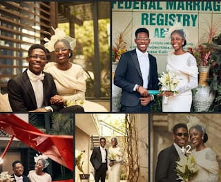 He wrote, “Civil wedding done! It’s official I’m legally married to my personal gift from God @mariewiseborn 🤍Lord we are grateful for helping us this far.”