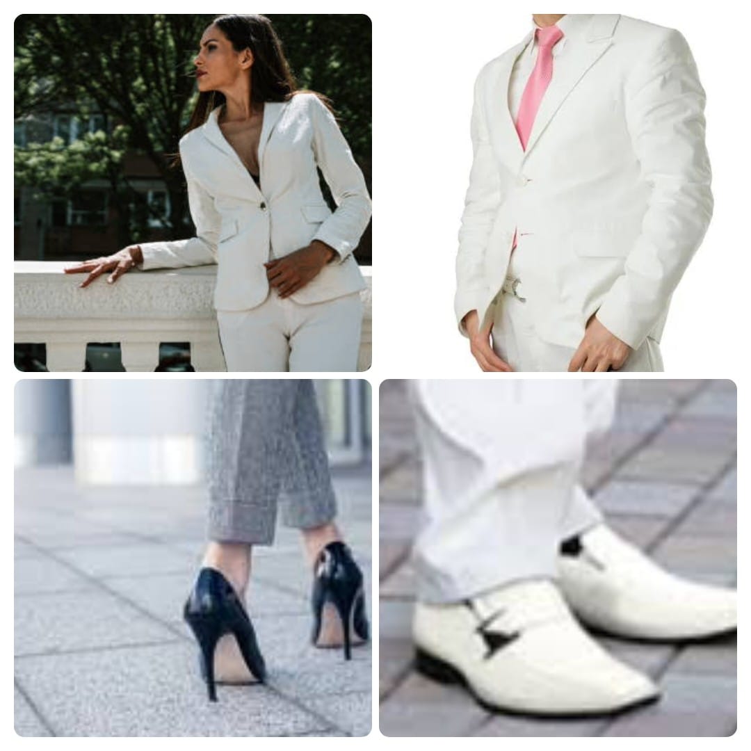 When wearing a white suit to the office, opt for footwear that complements the sharp, clean look of the suit.