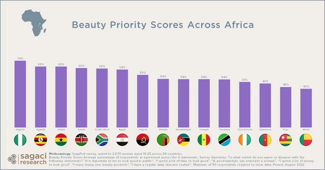 The survey conducted by Sagaci Research revealed that Nigerian women place the highest emphasis on beauty and aesthetics.