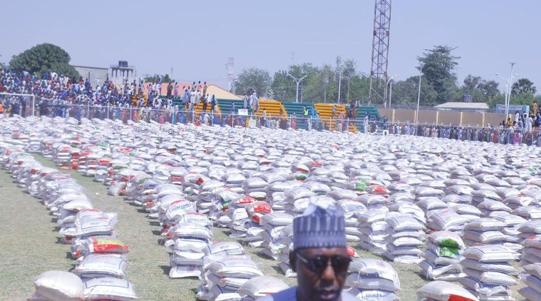 Zulum performed the symbolic presentation of the palliative on Wednesday at the Maiduguri Sports Centre, the venue of the distribution exercise. Each of the 100,000 households received one bag of 25kg rice and another bag of 25kg maize.