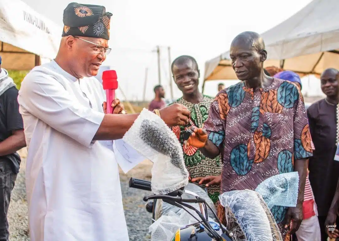 Engr Lamidi, Dollar Construction Boss Blesses Staff with Gifts Of Car, Motorcycles And Cash