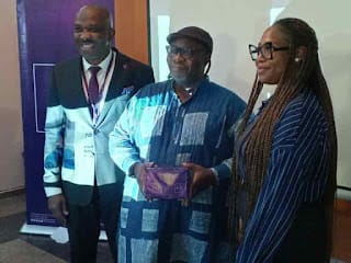Mr Abayomi Adisa receiving commendation gift from team of Polaris management
