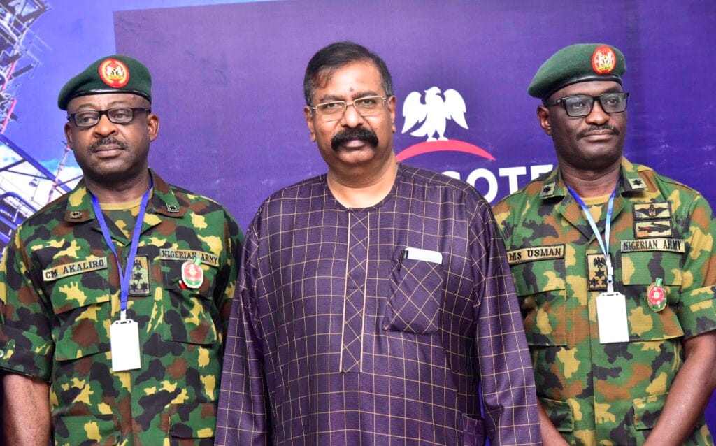 L-R: Team Coordinator, National Defence College, Brig. Gen. Chukwuemeka Michael Akaliro; Vice President, Oil and Gas, Dangote Industries Limited, Devakumar Edwin; Team Leader, National Defence College, Brig. Gen. Muhammed Sani Usman, during the National Defence College, Course 33 visit to Dangote Petroleum Refinery and Fertiliser Plant, Lekki Lagos on Tuesday, December 3, 2024