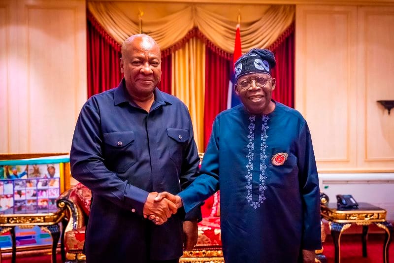 The President-Elect of Ghana, John Dramani Mahama paid a courtesy visit to President Bola Tinubu at his residence, Presidential Villa, State House on Monday.
