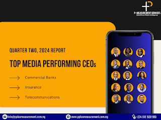 In spite of the challenging economic conditions and their adverse effects on businesses nationwide, Nigeria’s commercial banking, insurance, and telecommunications sectors have consistently maintained robust media relations, marketing strategies, and public awareness initiatives. Their success has been bolstered by the impressive data shared with the media in the second quarter, which has helped sustain positive public perception and confidence in these industries. An independent analysis of the media performance and prominence of the CEOs of Nigerian Commercial Banks, Insurance Companies and Telecommunication Providers for the second quarter was conducted by the leading Media Intelligence and Public relations audit agency, P+ Measurement Services.