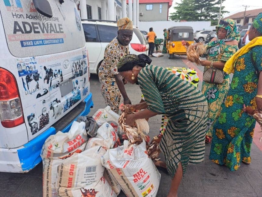 Lagos Lawmaker Distributes 1,000 Live Chickens, 500 Bags Of Rice, Others To Constituents