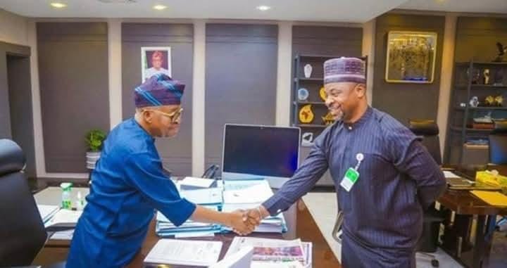 The National President of the National Union of Road Transport Workers, Alhaji Musiliu Akinsanya, popularly known as MC Oluomo, paid a courtesy visit on Wednesday to the Minister of Marine and Blue Economy, Adegboyega Oyetola, at his office in Abuja.