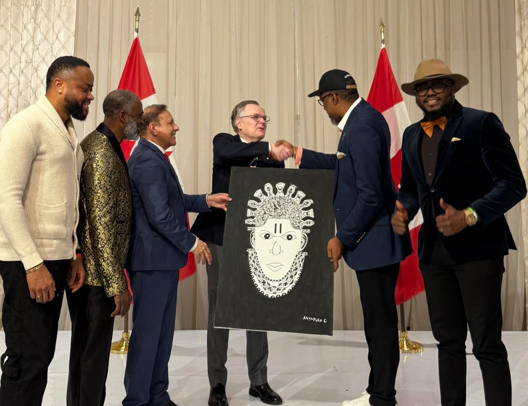 In a symbolic moment of art & cultural diplomacy in Mississauga, Ontario, Nigerian Cultural Diplomat and Convener of the Flavours of Nigeria Festival, Chukwuebuka Anyaduba, presented one of his recent paintings, Queen Idia, to Marc-André Blanchard, Chief of Staff to Prime Minister Marc Carney, at the fundraising dinner hosted by Shafqat Ali, President of Canada’s Treasury BoardBoard.