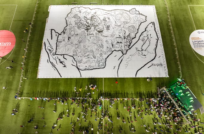 “Before embarking on this record drawing, I took a trip around my country to experience these different cultures personally and it was this experience that I brought to the stadium to create this drawing.