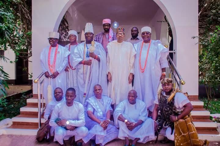 Bashir’s caption read, “Today, Ooni of Ife, Oba Adeyeye Enitan Ogunwusi (Ọjájá II), was in Daura with his entourage to visit former President Muhammadu Buhari.