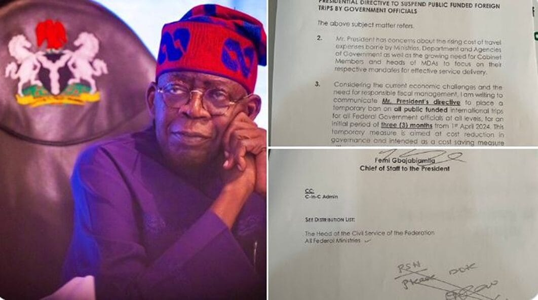 “Considering the current economic challenges and the need for responsible fiscal management, I am writing to communicate Mr Presideni’s directive to place a temporary ban on all public funded international trips for all Federal Government officials at all levels, for an initial period of three months from Ist April 2024.”