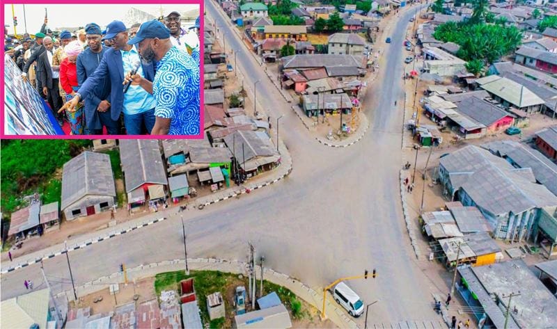 Newly reconstructed Aradagun – Mosafejo – Ilado – Imeke road, commissioned by the Governor on Wednesday, 06 August, 2025. INSET (from right): Special Adviser to the Governor on Infrastructure, Engr. Olufemi Daramola; Governor of Lagos State, Mr. Babajide Sanwo-Olu; his Deputy, Dr. Obafemi Hamzat and SSG, Barr. ‘Bimbola Salu-Hundeyin at the commissioning.