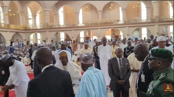 As part of activities to mark Nigeria’s 64th Independence Anniversary President Bola Tinubu on Friday joined other Muslim faithful for a special Jumat prayer at the National Mosque in Abuja.