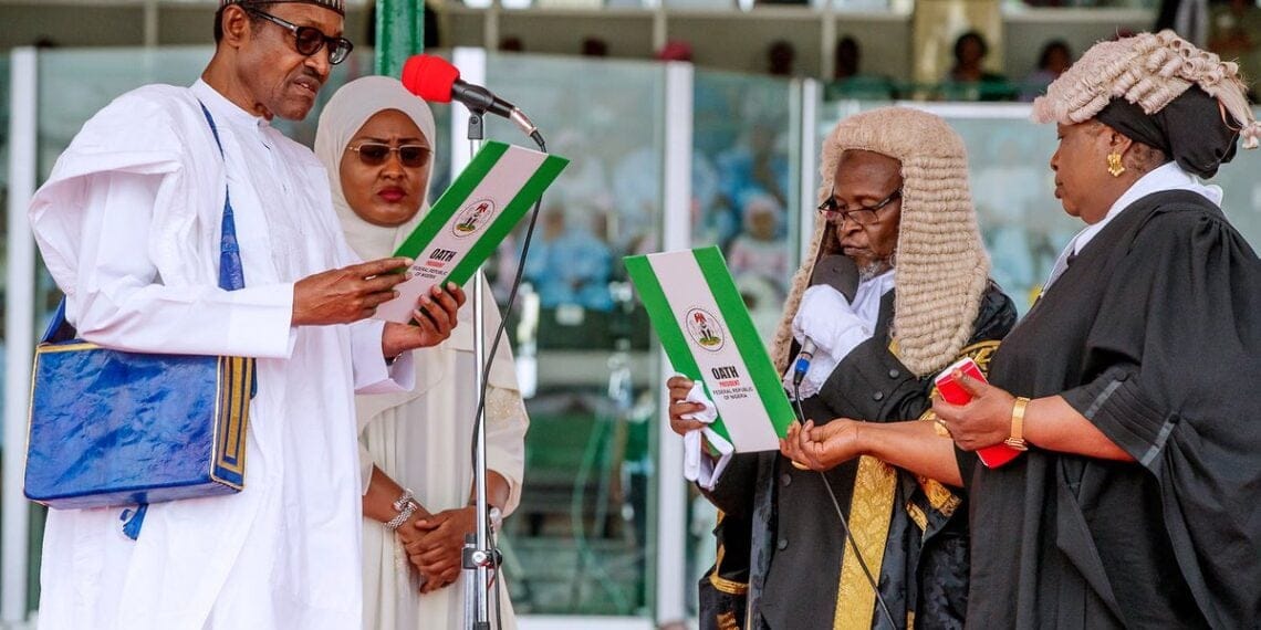 Muhammadu Buhari being sworn-in as president of Nigeria.