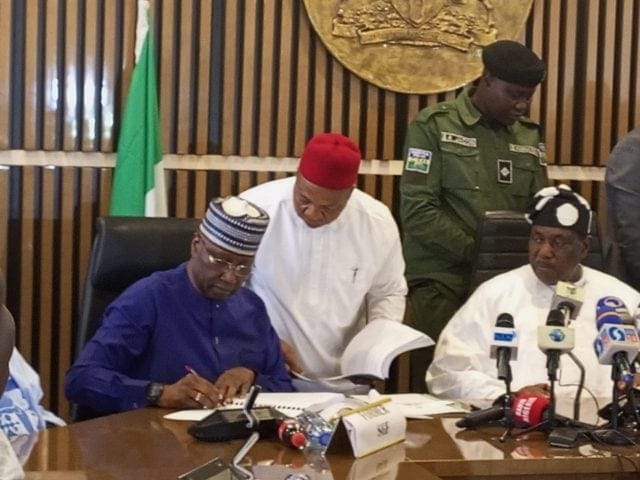 PICTORIAL: Boss Mustapha hands over SGF documents to Akume