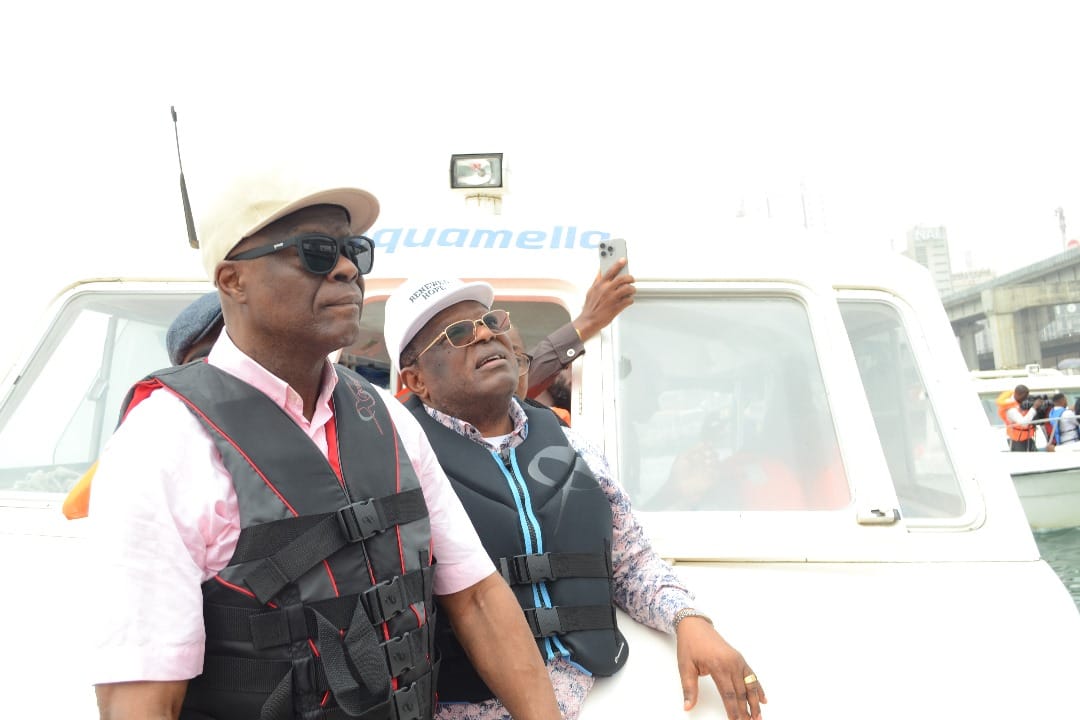 The two ministers were accompanied by the General Manager of LASWA, Oluwadamilola Emmanuel and the trio were conveyed on the Lagos Inland waterways on a collaborative inspection tour of the Carter Bridge, Iddo-Marina Shoreline and the Third Mainland Bridge.