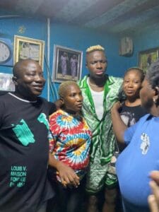 Osimhen with Baba Mosilimot and other former neighbours during his last visit to the community
