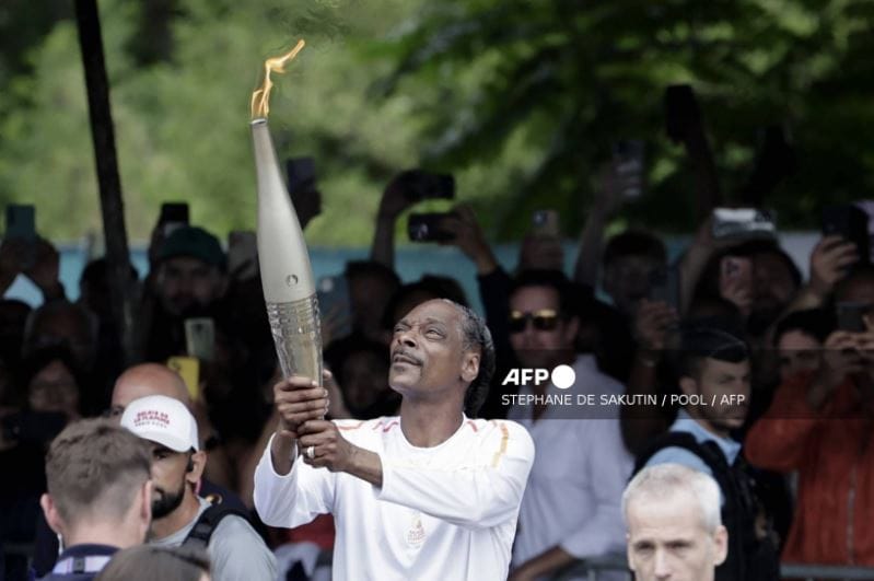 American rapper Snoop Dogg held the flame aloft as the Olympic torch relay neared the end of its 68-stage trek through France ahead of Friday’s opening ceremony.